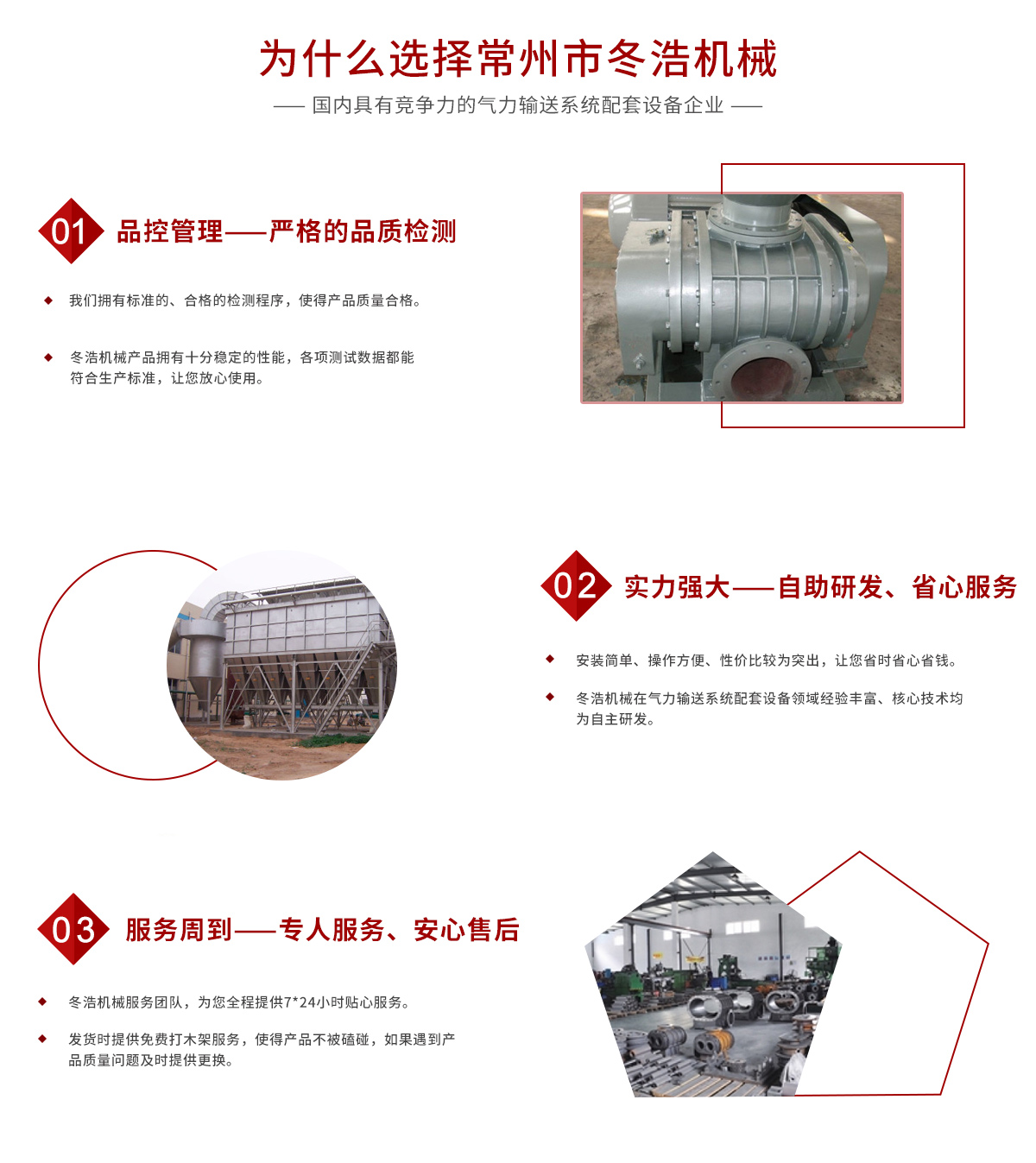 常州市冬浩機械有限公司占地面積5000平方米,擁有一支專業(yè)的科技研發(fā)團隊和配備專業(yè)的生產(chǎn)設備。專業(yè)致力于氣力輸送系統(tǒng)配套設備的研發(fā)、生產(chǎn)及銷售。產(chǎn)品在實際應用中不斷創(chuàng)新、不斷升級,現(xiàn)已對接實現(xiàn)自動化、智能化、人性化。實踐證明公司生產(chǎn)的吸糧機系列、高溫羅茨風機系列、關(guān)風機系列、氣力輸送設備系列、特殊工況訂制系列的產(chǎn)品被廣泛運用于石油化工、油脂、化工干燥、除塵、冶金、環(huán)保、電子、煤炭、建筑、電力機械、糧食、飼料等行業(yè)。為解決輸送、搬運等環(huán)節(jié)中節(jié)約大量的人力、財力;從而提高了生產(chǎn)效率。